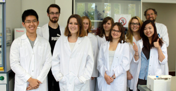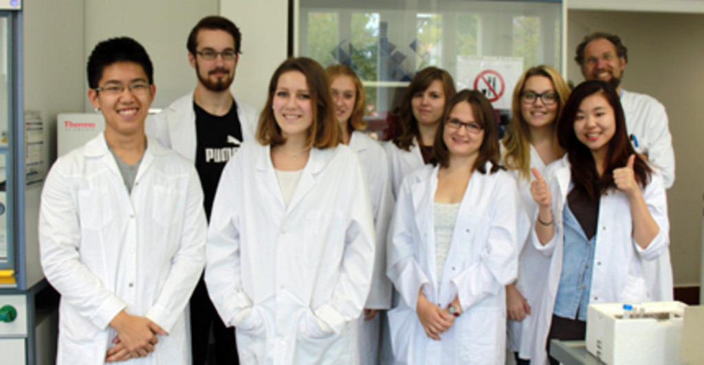 Im Oktober waren zum fünften Mal in Folge Schüler des Leistungskurses Biologie der 12. Klasse aus dem Leibniz-Gymnasium Potsdam und der Berlin-Brandenburg-International-School Kleinmachnow zu einem einwöchigen Praktikums im Institut für Ernährungswissenschaft der Universität Potsdam zu Gast. Prof. Dr. G. Püschel und Dr. habil. F. Neuschäfer-Rube Experimente experimentierten mit den beiden Gruppen – zu denen jeweils vier Schüler gehörten – zu Themen des Gegenstandskatalogs für das Abitur bzw. International Baccalaureate durchzuführen: Die Schüler nahmen Bakterienwachstumskurven in Abwesenheit und Anwesenheit unterschiedlicher Konservierungsmittel auf. Ferner klonierten sie ein PCR-Produkt in einen Vektor, transformierten Bakterien und wiesen anschließend die erfolgreiche Klonierung durch Restriktionsverdau des von ihnen gereinigten Plasmids nach. Der Renner war aber der Nachweis einer Bittergeschmacksrezeptorvariante in der eigenen genomischen DNA durch PCR und anschließende Analyse eines Restriktionslängenpolymorphismus und die Korrelation dieser genomischen Daten mit dem eigenen Phänotyp durch die Verkostung unterschiedlicher konzentrierter Lösungen mit der entsprechenden Bittersubstanz. Eine Mutation führt dazu, dass etwa ein Viertel der Menschen diese Bittersubstanz gar nicht schmecken kann, andere sie aber als extrem unangenehm bitter wahrnehmen. Die Experimente machten für die Schüler die in der Schule nur theoretisch behandelten Techniken der Molekularbiologie anschaulich und fassbar. Für die Leibniz-Gymnasium Schüler war die auf Englisch durchgeführte Lehrveranstaltung mit den Schülern der BBIS zudem eine Gelegenheit, internationale Wissenschaftsluft zu schnuppern. Das Praktikum mit den durchweg hoch motivierten und interessierten Schülern hat nicht nur den Schülern, sondern auch den Lehrenden großen Spaß gemacht. Wiederholung geplant, Nachahmung empfohlen, Sponsor gesucht.