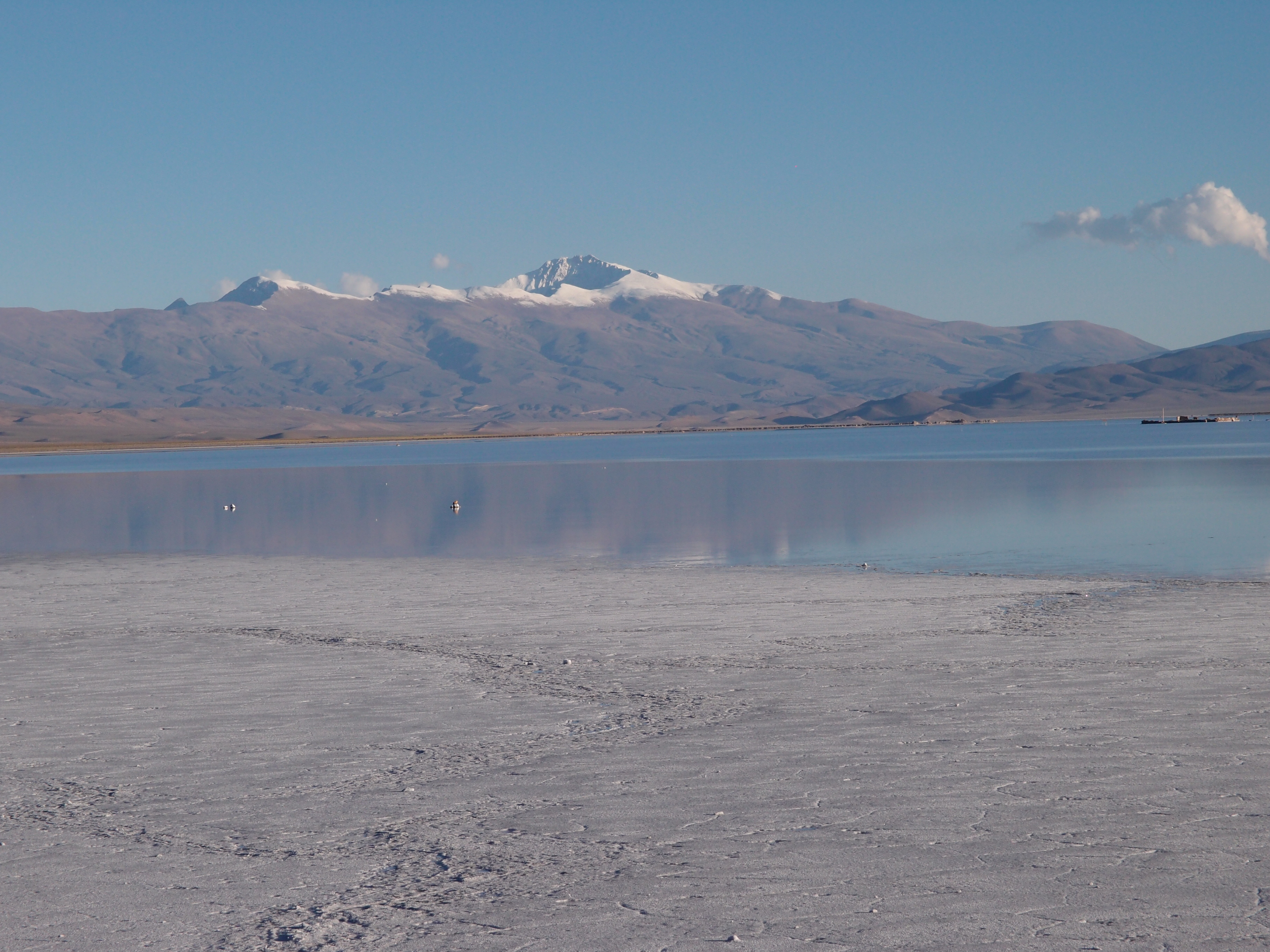 Foto: Starkniederschläge haben Bereiche der östlichen Anden in Nordwestargentinien erfasst und dort zu Schneefall auf fast 6000 Meter Höhe (Nevado de Chañi) und zu Regen in den darunterliegenden Bereichen auf fast 4000 Meter geführt. Das beeinflusste Gebiet ist normalerweise sehr trocken, was auch die Salzablagerungen im Vordergrund zeigen. Der See existiert nur aufgrund des starken Niederschlages. (Foto: Bodo Bookhagen)