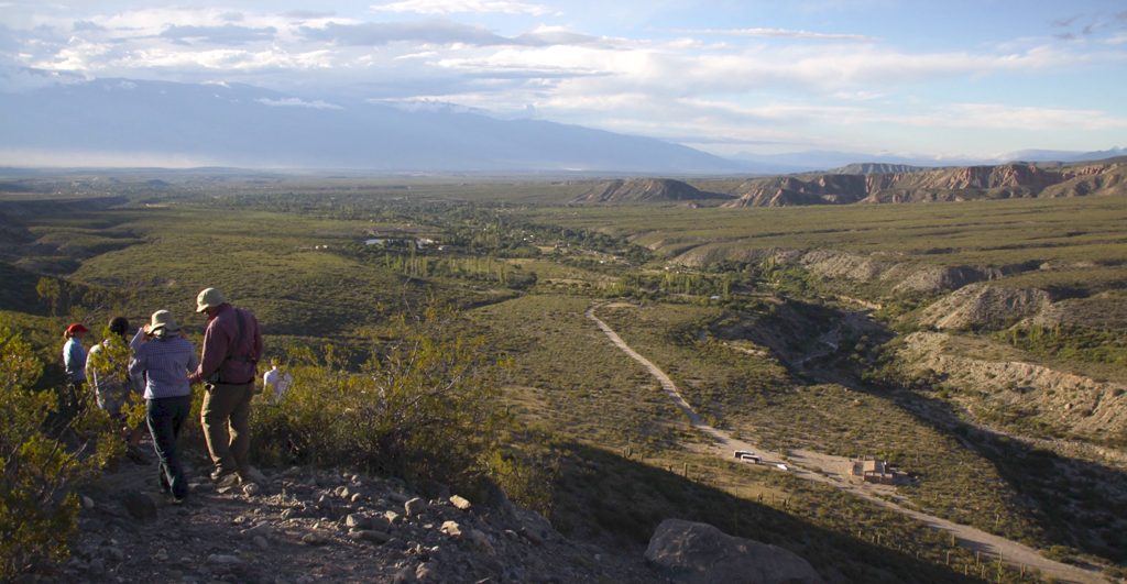 Oberhalb der Baumgrenze öffnet sich der erste Blick auf die geologischen Einheiten, die uns den Rest des Tages begleiten. Während der Abfahrt ins nächste Tal passieren wir schließlich die Grenze einer neuen Klima- und Vegetationszone. Kakteen und Hartlaubgewächse zeugen von ganzjährig semi-ariden Verhältnissen. Die Mittagspause verbringen wir in Tafi del Valle, wo wir die hiesige entspannte Lebenskultur zum ersten Mal hautnah erleben können. Hier läuft die Zeit nicht. Sie spaziert ...