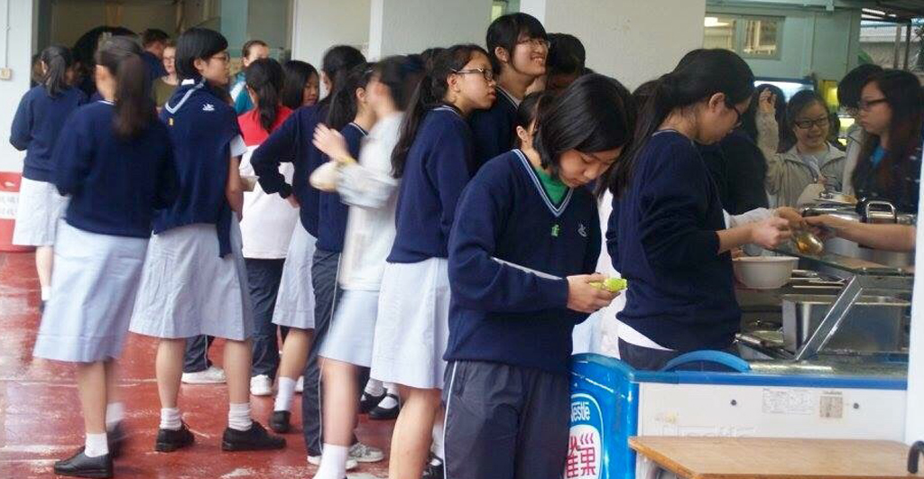Der heutige Tag ist ein wahres Highlight auf unserer Reise. Wir besuchen die „PrimRose Girls' School”. Aufgrund der für Hong Kong typischen und leider ab und an auch widrigen Witterungsbedingungen steigen wir direkt vor dem Hotel in ein Taxi, das uns gekonnt – die Staus der Rush Hour umfahrend – trocken bis vor die Schule fährt. Dort angekommen, begrüßt uns der dort unterrichtende NET (Native English Teacher) und führt uns durch die Schule, vorbei an der Caféteria, in der auch das Mittagessen ausgeschenkt wird, über den Schul- und Sporthof zum eigens für die Schülerinnen eingerichteten English Corner, ein kreativ gestalteter Raum zum Lesen, Spielen und Lernen auf Englisch. Rund 20 bis 25 Schülerinnen können hier in der Mittagspause mit ihren Mitschülerinnen oder auch Lehrern auf Englisch reden, englische Lernspiele spielen oder sich in die gemütliche Couchecke, über der ein Drachenkopf Wache hält, lümmeln und englische Bücher lesen. Wie an einigen der Hongkonger Mädchenschulen üblich, tragen auch hier die Schülerinnen eine einheitliche Uniform – ein klassisch hellblaues Kleid mit einem farblich abgestimmten marineblauen Pullover. Jedes der Mädchen trägt zudem auch noch eine oder mehrere Broschen an ihrer Uniform, die anzeigen, welchen Clubs der Schule sie angehören.