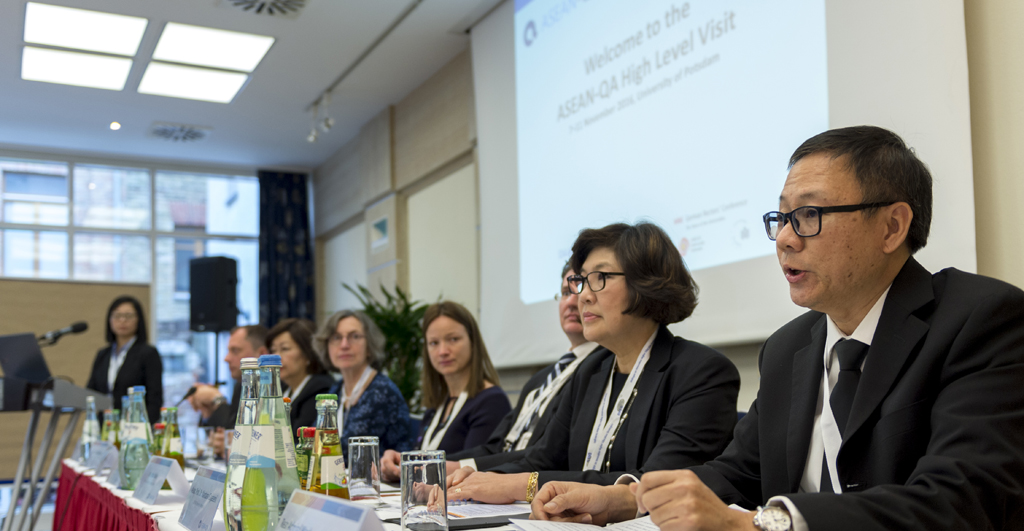 Das ASEAN-QA-Projekt wird gefördert vom Deutschen Akademischen Austauschdienst und der Hochschulrektorenkonferenz mit Mitteln des Bundesministeriums für wirtschaftliche Zusammenarbeit und Entwicklung. Die Universität Potsdam arbeitet hierfür mit dem ASEAN Quality Assurance Network (AQAN), dem ASEAN University Network (AUN) und dem Southeast Asian Ministers of Education Organization Regional Centre for Higher Education and Development (SEAMEO RIHED) in Südostasien sowie der European Association for Quality Assurance in Higher Education (ENQA) zusammen.
