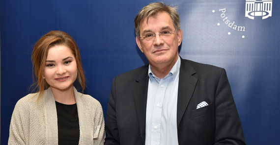Muazzamhon Abdurazokova kam 2011 als Au-Pair aus Usbeskistan nach Deutschland. Damals wollte sie unbedingt die hiesige Kultur näher kennenlernen und ihre deutschen Sprachkenntnisse verbessern. Heute steht die Deutschlandstipendiatin kurz vor dem Abschluss ihres Bachelorstudiums „Politik und Verwaltung“ mit dem Zweitfach „Recht der Wirtschaft“. Ihr Stipendium und den Preis des Deutschen Akademischen Austauschdienstes (DAAD), den sie im vergangenen Jahr erhielt, hat die 24-Jährige unter anderem ihrem sozialen Engagement zu verdanken. Bereits seit 2013 engagiert sich die Stipendiatin im Verein „Kiezbezogener Netzwerkaufbau KbNa e.V.“ in Berlin, wo sie nach einer Schulung zur Gruppenleiterin ein Projekt eigeninitiativ übernommen hat: Mädchensport im Soldiner Kiez. „Für die Mädchen, von denen viele einen Migrationshintergrund besitzen, bin ich ein Vorbild. Ich habe mich in Deutschland integriert und absolviere ein Studium.“ Zudem ist Muazzamhon Abdurazokova beim AWO-ElternService aktiv, organisiert dort Veranstaltungen, übernimmt nicht selten die Notfallbetreuung. „Ich bin eine Betreuerin, die für die Kinder immer Zeit findet“, sagt sie von sich selbst. Trotz ihres zeitintensiven Studiums engagiert sich die Stipendiatin darüber hinaus seit Kurzem für die Universitätsgesellschaft Potsdam e.V.