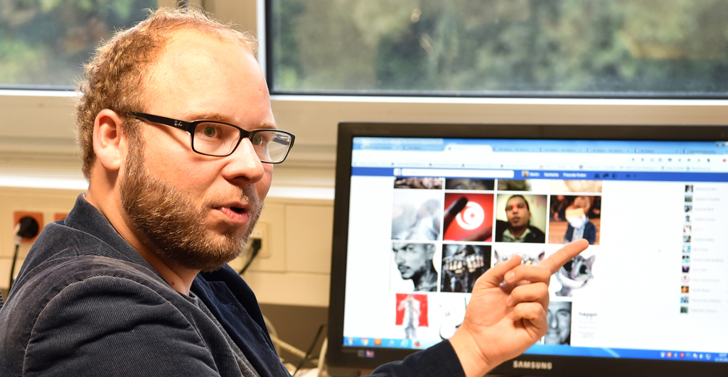 Neben Bildern sind Interviews die Basis seines Forschungsprojekts. Bei Facebook startete der Medienforscher einen Aufruf, an seiner ethnografischen Befragung teilzunehmen. Mit 35 Nutzern des sozialen Netzwerks führte Erdmann anschließend stundenlange Interviews, für die er mehrmals nach Tunis reiste. Seine Interviewpartner sind Blogger, Internet-Aktivisten und Künstler jeden Alters, Männer und Frauen. Im Mittelpunkt standen Fragen nach dem Zusammenhang zwischen der politischen Umwälzung und dem Gebrauch von Bildern in sozialen Netzwerken: Wie schätzen die Befragten den Verlauf der Revolution ein? Welchen Einfluss trauen Sie Facebook zu? Und welche Bedeutung haben digitale Bilder für sie ganz persönlich? Für seine Analyse verbindet er gezielt die ethnografischen Interviews mit der Zeichentheorie, der sogenannten Semiotik, und arbeitet sowohl mit den Aussagen der Befragten als auch mit den Bildern, die sie bei Facebook hochgeladen haben – insgesamt rund 300 Stück. „Als Semiotiker schaue ich mir die Bedeutung von Bildzeichen an. Die ethnografische Methode hilft mir, diese Zeichen nicht als Deutscher zu lesen, sondern den kulturellen Kontext derjenigen zu verstehen, die sie nutzen“, erklärt Erdmann. Nicht nur aufgrund der Menge war dies eine eintönige Aufgabe, wie er gesteht. Mitunter hätte er lieber Archive durchforstet, als Facebook-Timelines hinabzuscrollen: „Wegen des schlechten Interfaces und der mangelhaften Durchsuchbarkeit ist Facebook als wissenschaftliche Quelle unglaublich ermüdend.“