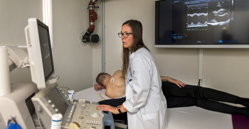 Gordon Strähnz gehört zu jenen, die sich heute untersuchen lassen. Er ist Nachwuchsfußballer beim FC Energie Cottbus und spielt in der C-Junioren-Regionalliga. Wie wohl nahezu jeder Junge in diesem Alter träumt er von der ganz großen Karriere. Ob sie ihm gelingt, hängt auch von seiner Gesundheit ab. Zwei bis drei Stunden wird es dauern, bis der Check seines Körpers beendet ist. Gerade ist der junge Mann an Station Zwei, den sogenannten Ruheuntersuchungen, angelangt. Mitarbeiterin Renate Hümbert misst bei ihm Gewicht und Größe, testet sein Hör- und Sehvermögen. Alles läuft wie am Schnürchen. Gleich will sie noch ein Ruhe-EKG anlegen. Gordon Strähnz nimmt die Tests gelassen. Er ist topfit. Falls später doch einmal Beschwerden auftreten sollten, können die Experten vor Ort seine Werte mit denen von 2017 vergleichen, denn der jährliche Check wird genau dokumentiert. Ein Vorteil für beide Seiten: die Aktiven, die sich hier gut aufgehoben fühlen, und die Mediziner und Wissenschaftler, die so die Gesundheitsverläufe der Sportlerinnen und Sportler immer im Blick haben. Die Jahresgrunduntersuchungen sind Pflicht für jeden Nachwuchsathleten. Etwa 400 davon führt das Team der Ambulanz jährlich durch. Weitere 400 nimmt das Personal um den Ärztlichen Direktor Prof. Dr. Frank Mayer jährlich vor, wenn Kinder – in der Regel nach der sechsten Klasse – in die Sportschulen des Landes Brandenburg wechseln. Hier wird dann festgestellt, ob sie sich unter gesundheitlichem Aspekt dafür eignen, den durchaus anstrengenden Weg eines Schülers zu gehen, der sich parallel zum Spitzenathleten entwickeln soll. Beide Untersuchungen sind inhaltlich im Prinzip identisch aufgebaut. Mit ihnen wird die Gesundheit beurteilt, nicht die Erfolgschancen in der gewählten Sportart. „Es gibt aber Unterschiede im Detail“, erklärt Frank Mayer. Etwa dann, wenn Belastungswerte erhoben werden. So müssen die einen auf das Fahrrad, die anderen auf das Laufband – mit oder auch ohne Blutentnahme. „Das ist die einzige Ausnahme und hat mit der betriebenen Disziplin zu tun“, so der Professor für Sportmedizin und Prävention. Vor ihm und seinen Kollegen stehen regelmäßig Athleten aus rund 20 Sportarten. Insgesamt durchlaufen die Aktiven fünf Stationen: dabei unter anderem die Blutentnahme, ein Herz-Ultraschall, Röntgen und EKG, anthropometrische Messungen und besagter Belastungstest. Die kompletten Ergebnisse bekommen Schüler und Eltern in einem Arztbrief mitgeteilt. Der OSP erfährt, ob das Kind aus medizinischer Sicht weiter Leistungssport betreiben kann oder nicht bzw. im Falle der Einschulung für die duale Ausbildung in einer Sportschule tauglich ist.