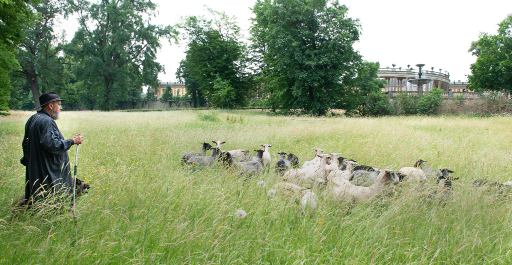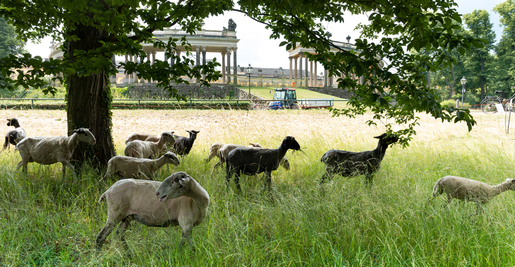Zur Pflege der Wiesen im Park von Sanssouci setzt die Stiftung Preußische Schlösser und Gärten Berlin-Brandenburg (SPSG) jetzt circa 30 Schafe ein. Damit verbunden ist ein Beweidungsprojekt, das von Wissenschaftlern der Arbeitsgruppen Biodiversitätsforschung beziehungsweise Landschaftsmanagement und des Botanischen Gartens der Universität Potsdam begleitet wird. Das Vorhaben ist sowohl als Gartendenkmalpflege als auch als Beitrag zum Naturschutz gedacht. Die Tiere der Rassen Bentheimer und Rauwolliges Pommersches Landschaf werden durch einen Schäfer betreut und weiden zunächst auf dem Rasen gegenüber dem Ehrenhof des Schlosses Sanssouci.