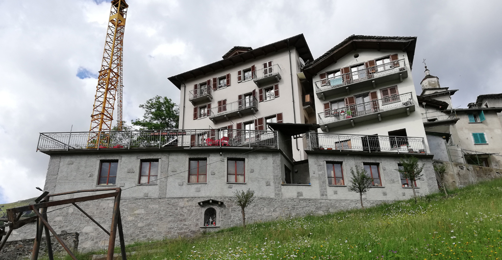 An unserem letzten Morgen in Rimella laden wir unsere schweren Koffer und Rucksäcke auf den Lastenaufzug, der das Gepäck direkt vom Albergo den Hang hinab zur Straße transportiert – eine alte Technik, mit der Lebensmittel in die Herberge geliefert werden und die auch uns heute die Abreise erleichtern soll.