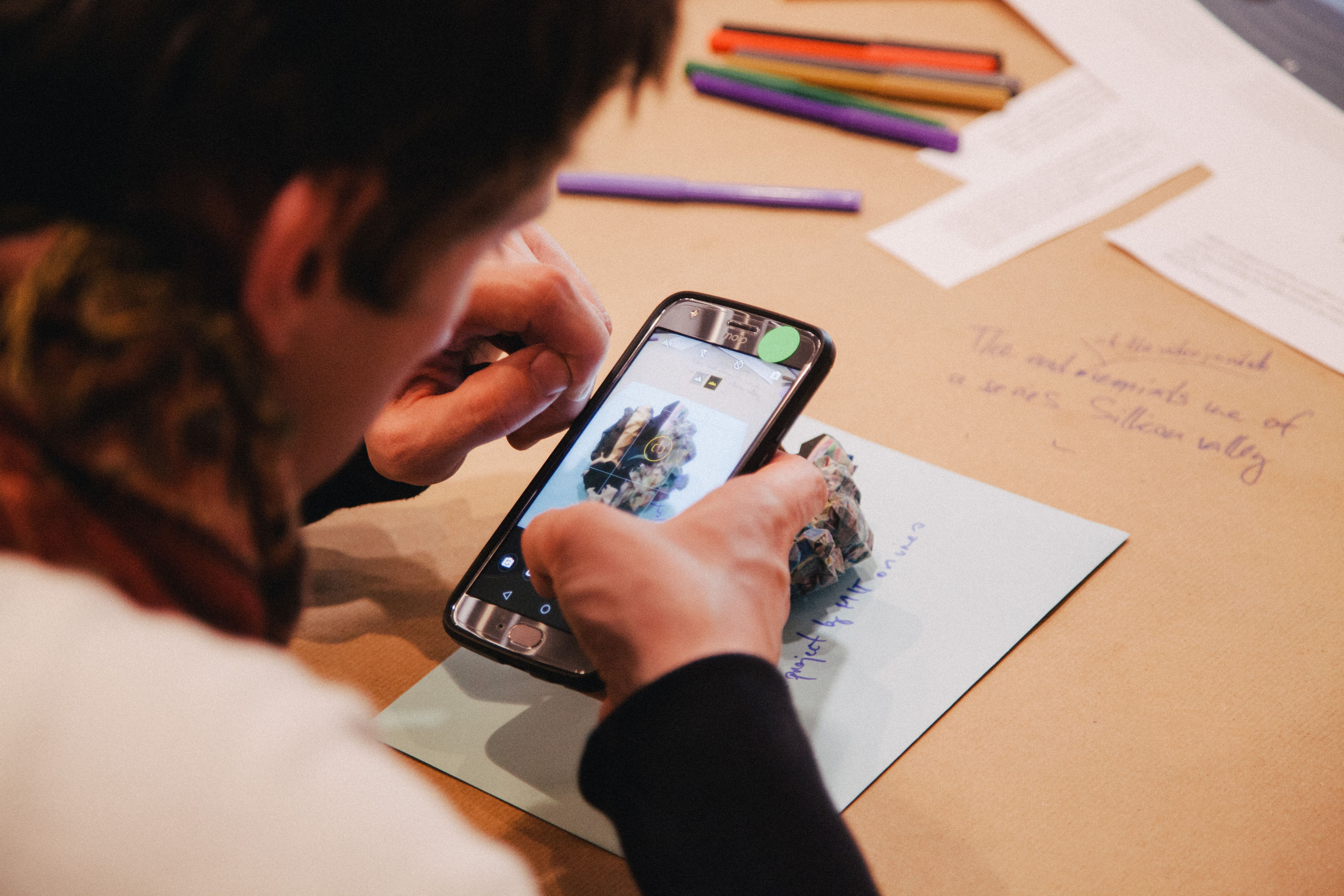 Foto: Neuro-Training-Devices, hier mit dem Smartphone fotografiert, sollen durch simples Ertasten bestimmte Hirnregionen aktivieren, um unübersichtliche Datenmengen wortwörtlich greifbar zu machen. Foto: Oskar Smollny/ZeM