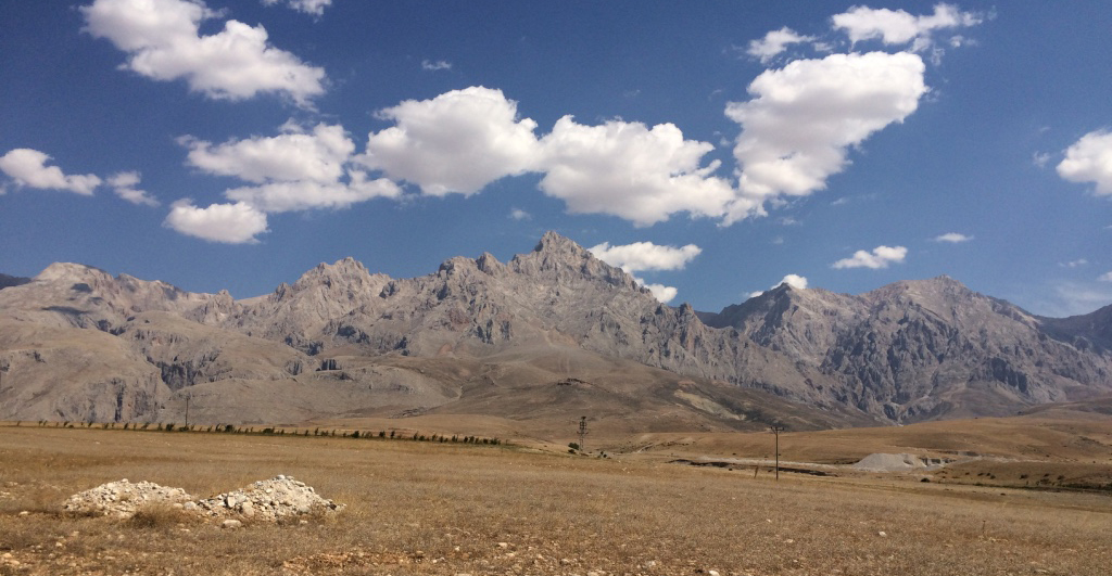Unsere Gruppe wandert langsam die Nordflanke des Tauridengebirges hinauf, um die Ecemiş-Störungszone zu finden. Obwohl wir aufgrund eines erneuten und unerwarteten Busausfalls festes Schuhwerk und wichtige Nahrungsmittel eingebüßt haben, machen wir gute Fortschritte. Zunächst wollen wir uns einen Aufschluss von Schwemmfächerablagerungen anschauen, um Bodenbildungsprozesse in dieser trockenen Region zu verstehen. Wir können aber auch schon jetzt eine gute Aussicht auf die Störungszone erhaschen. Zur großen Überraschung aller hat sich unserer geologischen Expedition ein freundlicher Welpe angeschlossen, den wir durch großzügiges Streicheln und gelegentliche Wasserversorgung an uns gebunden haben. Gestern sahen seine Artgenossen mit den eisernen und gespickten Halskrausen noch sehr furchterregend aus. Von nun an begleitet uns der Kleine auf unserer Exkursion.