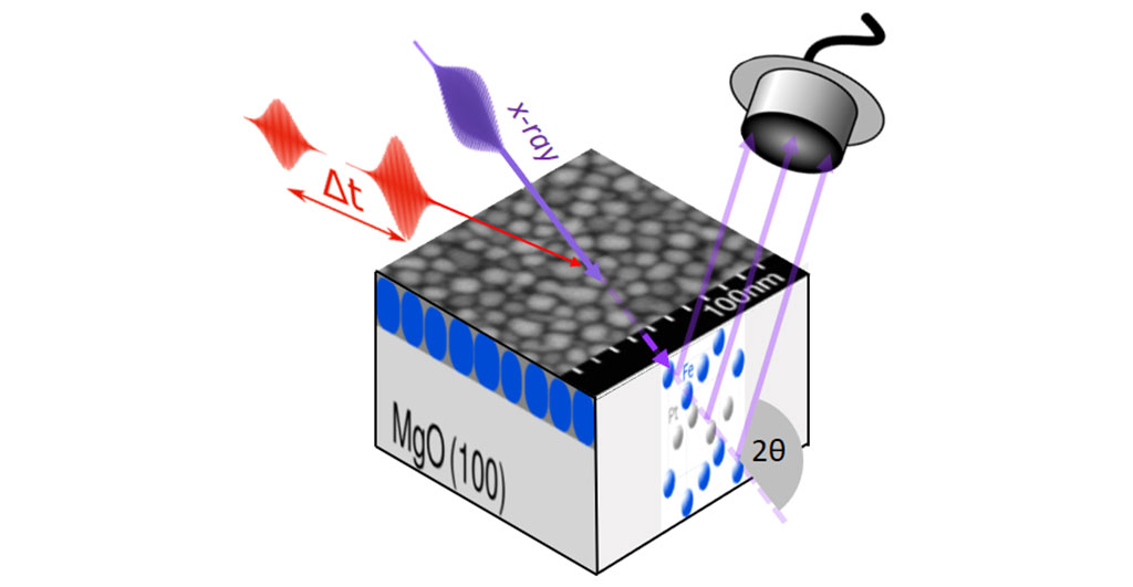 Dieses faszinierende Phänomen hat nun ein Team um Prof. Matias Bargheer erstmals an unterschiedlichen Eisen-Platin-Dünnschichten experimentell verglichen. Bargheer leitet eine gemeinsame Forschergruppe am Helmholtz-Zentrum Berlin und der Universität Potsdam. Gemeinsam mit Kollegen aus Lyon, Brno und Chemnitz wollte er untersuchen, wie sich das Verhalten von perfekt kristallinen FePt-Schichten von den FePt-Dünnschichten unterscheidet, die für HAMR-Speicher verwendet werden. Diese bestehen aus kristallinen Nanokörnern aus übereinandergestapelten einatomaren Lagen von Eisen und Platin, die in eine Matrix aus Kohlenstoff eingebettet sind.