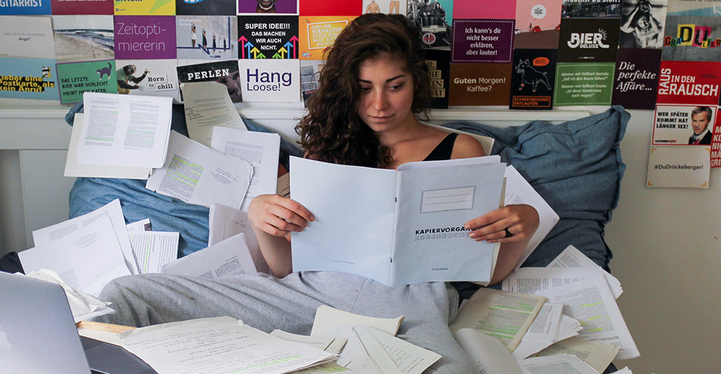 Unter den Siegerfotos findet sich etwa die zerlegte Tastatur von Nele, die mit der Zahnbürste noch E und F und Z reinigen muss, ehe die Master-Thesis geschrieben werden kann, ebenso wie Sophia in einem Berg Papier, der bleibt, Corona hin oder her, und der schlichte, in schwarz-weiß gehaltene Schreibtisch von Dulguun, die dazu schrieb: „Nein, Studieren funktioniert dieses Semester nicht so gut. Und das sollte auch OK sein.“ Oder aber der improvisierte „Pleistocene Park“, den Debby erschuf, als die akribisch vorbereitete Präsentation ihres Referats sich verabschiedet hatte, die Study-Pong-Variation von Aaron und der schwimmende Schreibtisch von Regina, von dem alle gern wüssten, wie man dahinkommt.