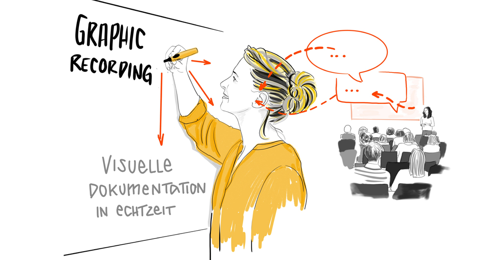 Und heute, fünf Jahre später? Ich zeichne. Ob digital oder auf Papier, in Form von Illustrationen, Infografiken, Prozessvisualisierungen oder in Kursen. Bei Kongressen nutze ich die Methode des Graphic Recording, um das Wesentliche zu erfassen und darzustellen. Die Visualisierung des Gesagten dient der Reflexion, als Anknüpfungspunkt und als Brücke, um Verständnisprobleme zu lösen. Man verbindet die Information mit einem positiven Gefühl und erinnert sich gern, auch weil es optisch anzieht. Manchmal sind es auch nur Sketchnotes – kleiner, kompakter und individueller. Meine Stärke liegt in der Darstellung komplexer Inhalte aus der Forschung, weil ich deren Sprache beherrsche, übersetzen und verbildlichen kann. Damit verdiene ich mein Geld. Das ist mein Beruf.