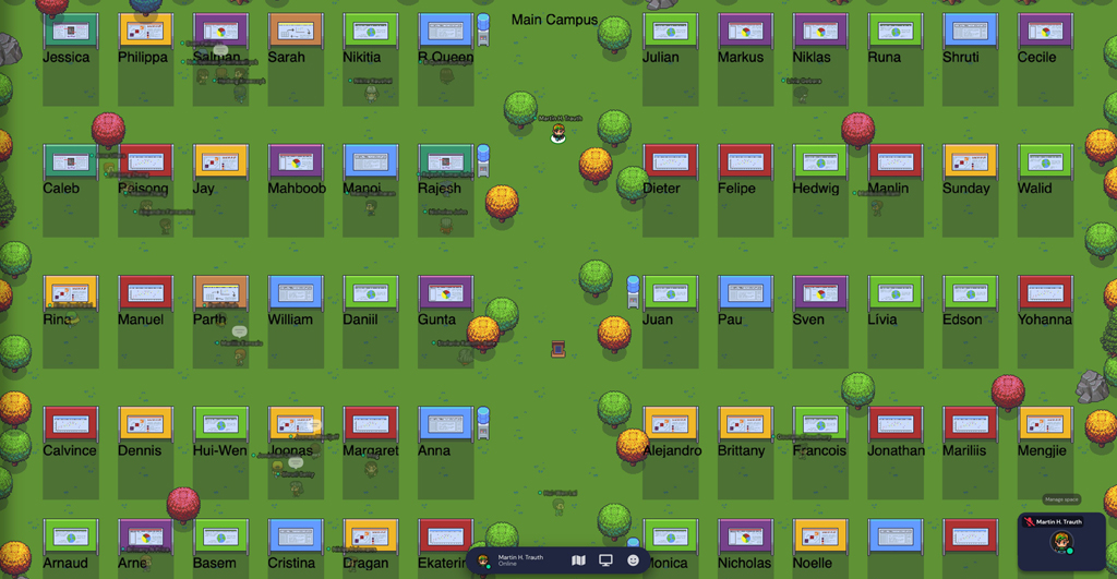 Für die wissenschaftliche Arbeit war das Online-Format auf jeden Fall ein Gewinn. Das Programm ließ sich hervorragend in die virtuelle Welt übertragen: Vormittags hielten die Dozierenden Vorträge, die aufgezeichnet und anschließend allen Teilnehmenden über die Onlineplattform Open.UP zur Verfügung gestellt wurde. So konnten auch jene sie ansehen, die etwa aufgrund der Zeitverschiebung nicht live dabei waren. Auch Lehrbücher, Präsentationen und weitere Materialien standen dort bereit. Anschließend gab es Gruppenarbeit – in „gather.town“ oder auf GitLab, die sich perfekt zur Online-Zusammenarbeit eignen. Martin Trauth selbst etwa bot interaktives Live Coding an, also gemeinsames Programmieren. „Eine Teilnehmerin aus den USA ist dafür extra um 3 Uhr morgens aufgestanden, weil sie den Austausch beim Live Coding so geschätzt hat“, so der Forscher. „Überhaupt machen die verschiedenen Plattformen den Austausch der Forschenden um einiges leichter. Bildschirme teilen, kleine Quiz über Chatfunktionen, Posterpräsentationen online – Dinge lassen sich schneller zeigen, teilen und kommentieren. Es ist viel möglich, was sonst aufwendiger wäre.“ Und selbst für abendliche Zusammenkünfte hat Martin Trauth gesorgt: „Wir haben zwischen den Sessions, die im Mai/Juni sowie August/September stattfanden, Online-Stammtische organisiert, um die Teilnehmenden auch jenseits des fachlichen Austauschs zusammenzubringen.“