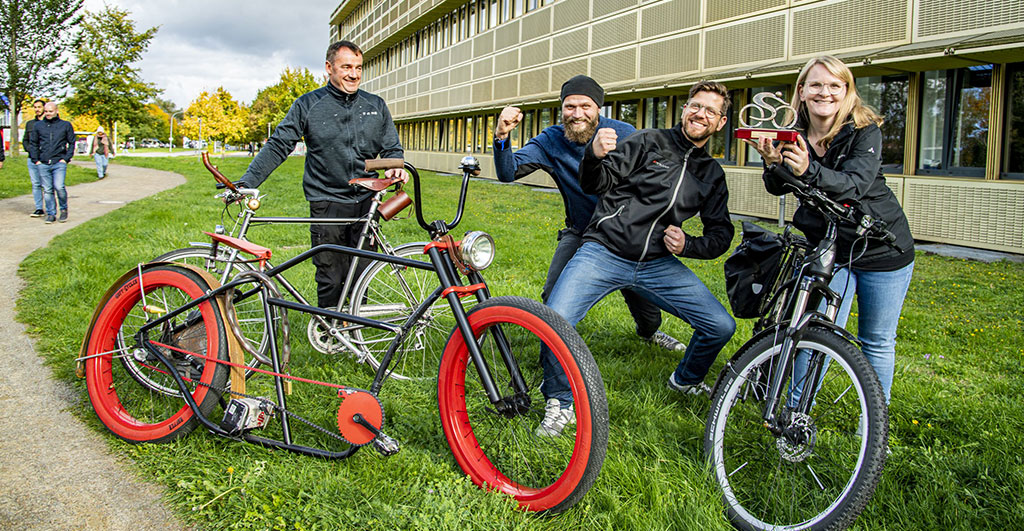 Der Pokal ging auch 2022 wieder an die Radlerinnen und Radler vom Hochschul-Gebäudemanagement. Das Team um Kapitänin Steffi Zarnack schaffte die meisten Kilometer pro Kopf und gewann damit zum dritten Mal in Folge. Im Durchschnitt legt jedes Teammitglied 295,6 Kilometer zurück. Einige kamen mit dem Rad täglich von Schenkenhorst oder Caputh nach Golm zur Arbeit.