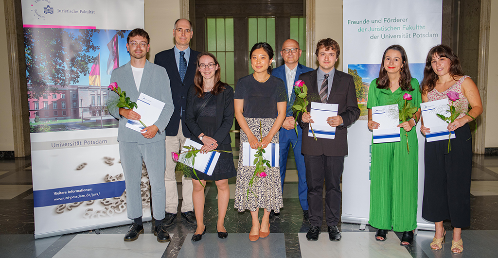 Als beste Studierende werden Denico Joel Ford und Nikolaus Konstantin Taube, die beide die exakt gleiche Examensnote erzielt haben, sowie Nuray Jordan geehrt. Sie sind die Jahrgangsbesten der beiden Prüfungskampagnen im akademischen Jahr 2022/23 und haben die Erste Juristische Prüfung mit hervorragenden Ergebnissen bestanden. Aus dem Deutsch-Französischen Studiengang der Juristischen Fakultäten der Université Paris Nanterre und der Universität Potsdam wird Camille Morel als beste französische Absolventin ausgezeichnet. Sie hat im Licence-/Bachelorstudiengang „Deutsch-Französische Studien“ ebenfalls eine außergewöhnlich gute Note erreicht.