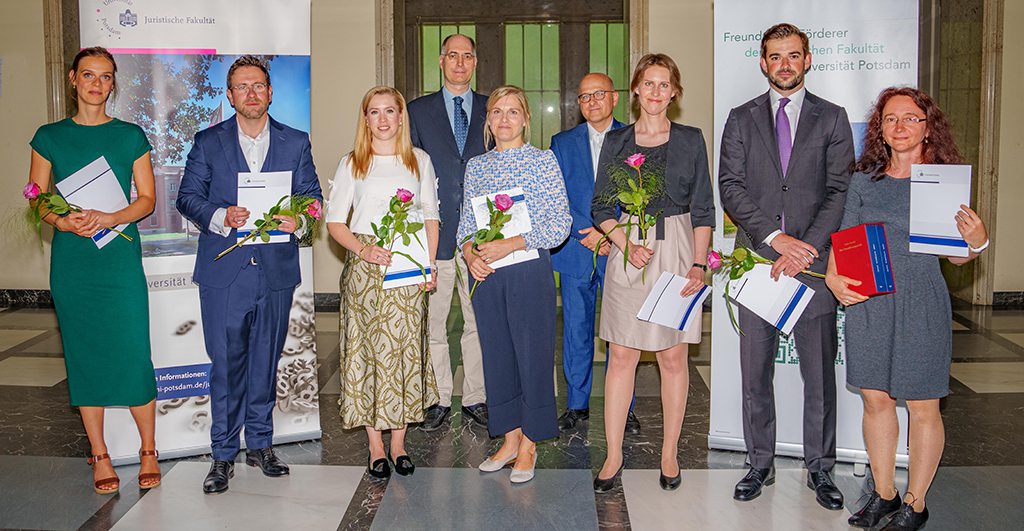 Mit der Verleihung des Wolf-Rüdiger-Bub-Preises hat der Verein der Freunde und Förderer der Juristischen Fakultät e.V. am 28. Juni 2023 auf dem Campus Griebnitzsee die zehn besten Absolventinnen und Absolventen aus dem akademischen Jahr 2022/23 geehrt. „Ich freue mich sehr, dass wir auch in diesem Jahr wieder zahlreiche hervorragende Nachwuchswissenschaftlerinnen und -wissenschaftler auszeichnen können“, sagt der Vorsitzende des Fördervereins Prof. Klaus Herrmann. „Der Wolf-Rüdiger-Bub-Preis wird bereits seit 1996 an der Fakultät verliehen. Dank der Spende des Stifters und Ehrenmitglieds kann der Verein auf diese Weise die besten Leistungen im Studium oder bei der Promotion sichtbar machen.“