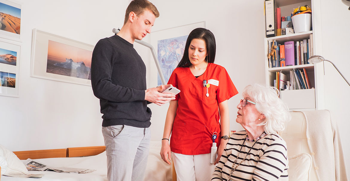 Zu Beginn mussten sich die IT-Experten erst einmal mit dem Arbeitsfeld der Pflege vertraut machen. Wie sieht der Alltag der Pflegenden aus? Welche Bedürfnisse und Wünsche haben sie an ihre Arbeit? Und wie könnte eine App sie optimal unterstützen? Dazu hospitierte das Team in Heimen, begleitete die Beschäftigten und sprach mit den Leitungen, lernte Fachbegriffe wie Dekubitus – Wundliegen – kennen oder was eine Wunddokumentation enthalten muss. „Am Ende stand die Erkenntnis, dass wir ein intuitives, leicht verständliches Produkt brauchen, das einfach zu handhaben und in den Pflegealltag integrierbar sein muss“, erklärt Lena Langer. Da in der Pflege häufig Menschen arbeiten, die keine deutschen Muttersprachler sind, muss die Spracherkennung zudem Akzente gut erkennen können.