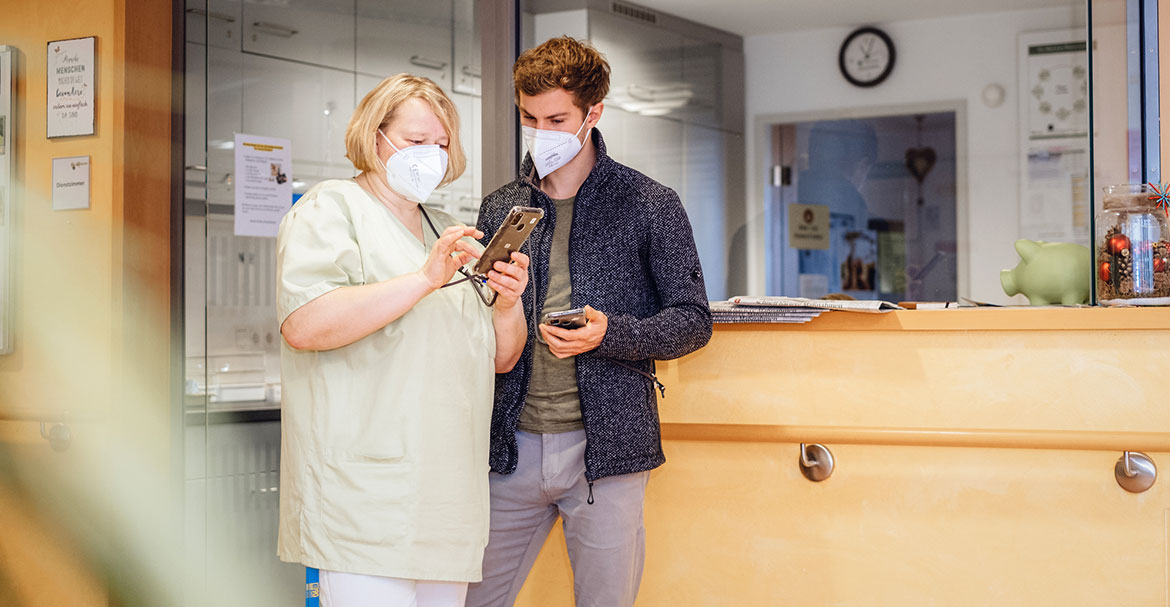 „Bis zu 30 Prozent ihrer Arbeitszeit verbringen Pflegekräfte mit der Dokumentation“, sagt Lena Langer. Mit der App lässt sich diese Zeit erheblich verkürzen: „Das Handy haben sie immer bei sich, drücken einen Knopf und sprechen hinein. Eine KI mit Spracherkennung wandelt das Gesprochene in Text um und überträgt es automatisch in das vorhandene Dokumentationssystem“, beschreibt sie das Prinzip der „voize“-App. Damit entfallen die Laufwege zum Stations-PC und die Eintragungen per Hand. „Die App wird sehr gut angenommen, die Entlastung ist deutlich spürbar“, fasst Lena Langer das bisherige Feedback zusammen. Nach einem Schulungstag und ein bis zwei Wochen in der Praxis verwenden auch die weniger Technikaffinen die App routiniert. Dass sie alle Pflegedaten stets griffbereit auf dem Handy haben und diese – etwa bei einem medizinischen Notfall – sofort abrufen können, sei ein weiterer Pluspunkt. Gegenwärtig untersucht eine vom Bundesministerium für Bildung und Forschung geförderte Wirksamkeitsstudie, an der unter anderem die Berliner Charité beteiligt ist, welchen Unterschied die „voize“-Technologie in der Pflege tatsächlich macht.