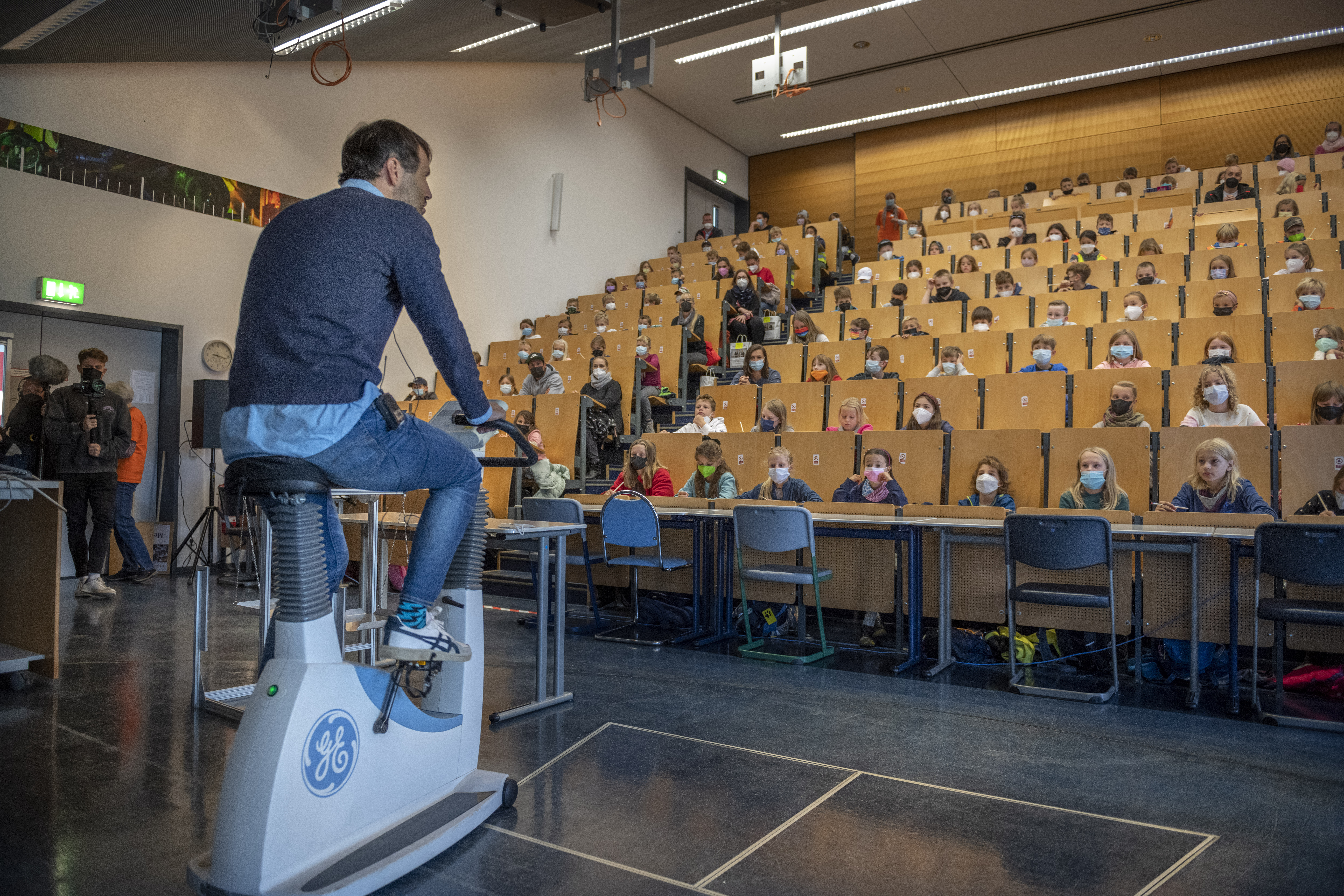 2023_087_Kinderuni-Thomas-Roese_UN10081: Ernährungswissenschaftler Prof. Dr. André Kleinridders erklärt, was Essen mit uns macht. Foto: Thomas Roese