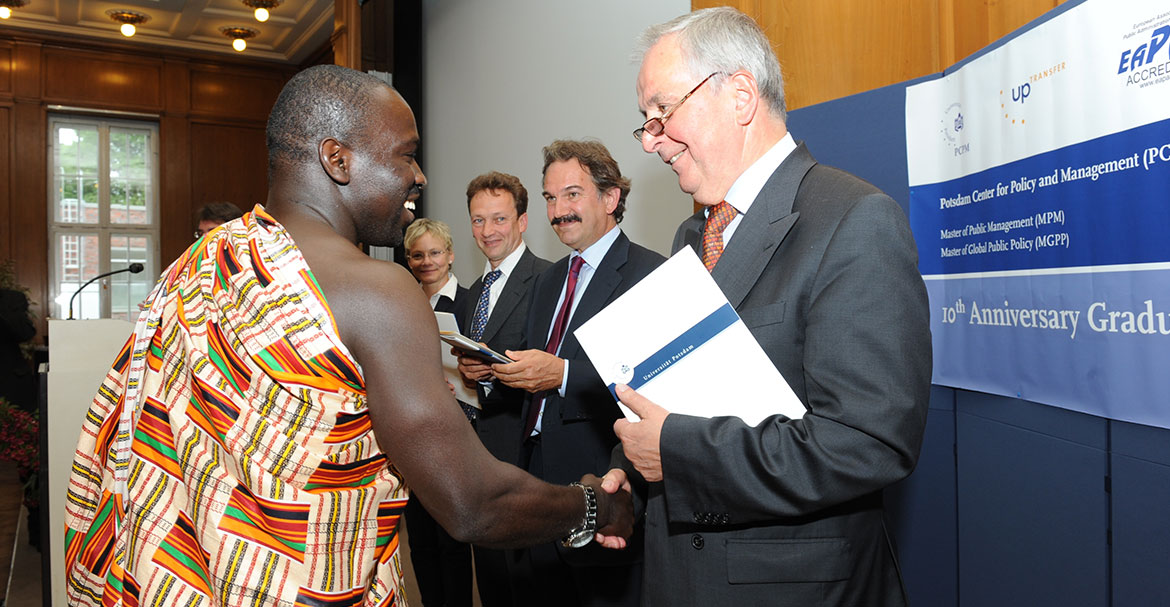 In Anerkennung seiner besonderen Verdienste hatte die Universität dem promovierten Volkswirt im Jahr 2018 die Ehrendoktorwürde der Wirtschafts- und Sozialwissenschaftlichen Fakultät verliehen.  „Ich habe schon als junger Wissenschaftler im Bereich der Umweltinformatik Klaus Töpfer persönlich kennengelernt. Ich erinnere mich noch sehr gut an diese Begegnung – er war Bundesminister, aber eben nicht nur. Sein wissenschaftlicher Hintergrund einerseits und seine Visionskraft andererseits haben mich damals beeindruckt“, so der Präsident der Universität Potsdam, Prof. Oliver Günther, Ph.D.