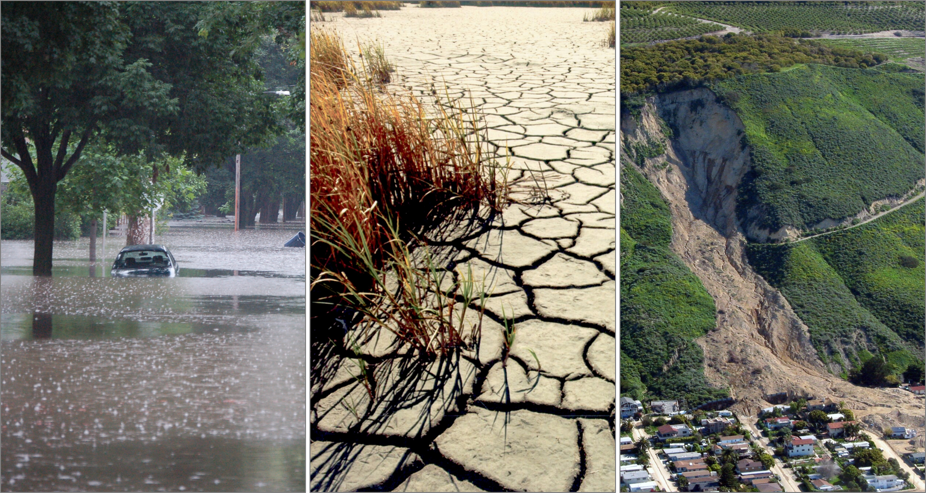 Abbildung 1: Überschwemmungen, Dürren und Erdrutsche gefährden jedes Jahr Millionen von Menschen. Bildrechte: USGS, Don Becker/Mark Reid.