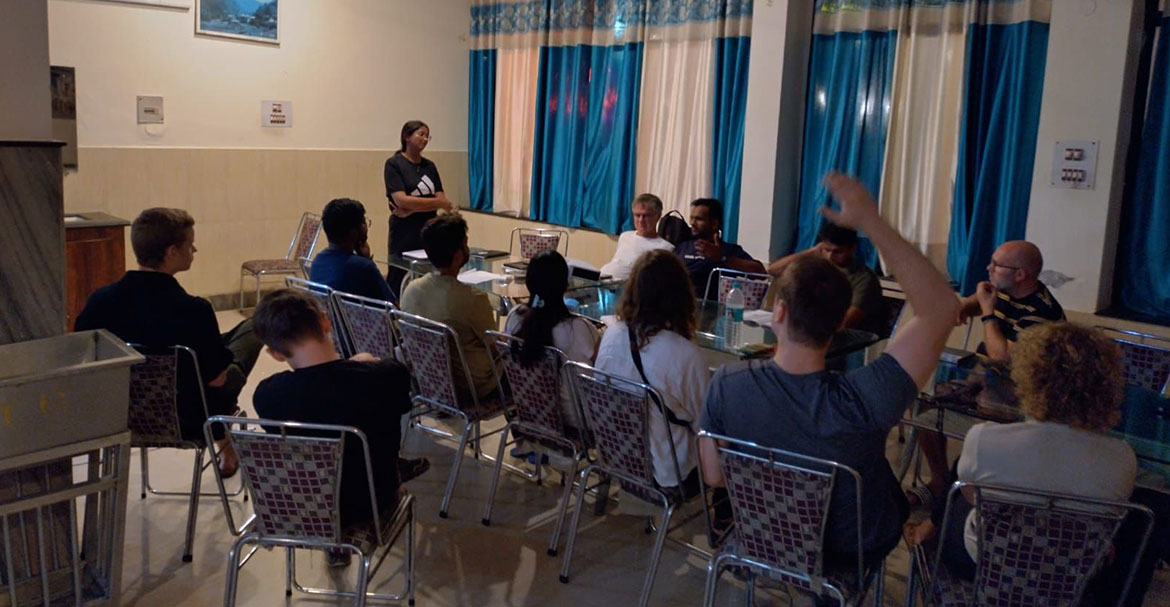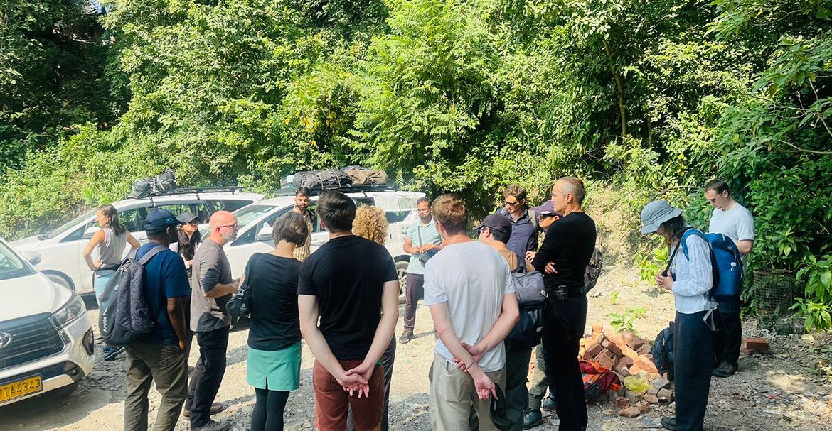 Einen ersten Halt gab es am Goa Beach in Rishikesh, wo uns Dr. Jürgen Mey eine Einführung in die tektonische Entwicklung des Himalaya gab. Anschließend diskutierten wir über Erdbeben, ihre Ausbreitung, Telekonnektionen und die für die Region geltenden Managementprotokolle.