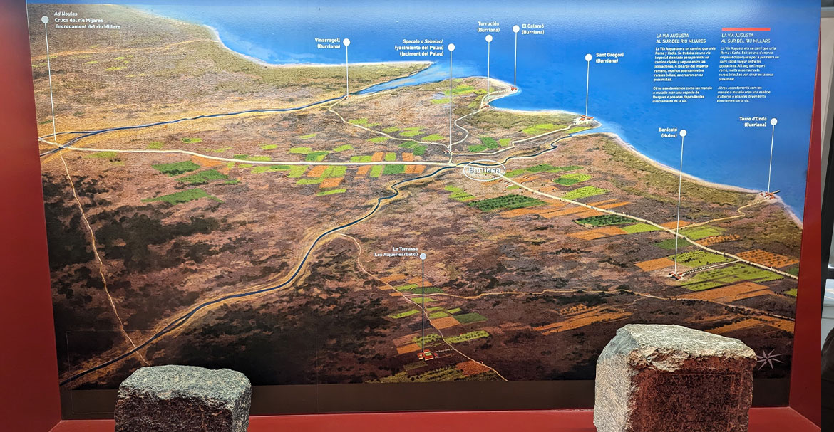 Die Ausstellung ist konkret in drei Räume aufgeteilt, im ersten sind Fundstücke zu sehen bei denen der Kontext unklar ist, im zweiten Raum sind Funde aus Burriana und der dritte stellt chronologisch mit Hilfe von Farben die verschiedenen Epochen dar und ermöglicht einen buchstäblichen Gang durch die Geschichte von der Steinzeit bis zur Römischen Kaiserzeit. Außerdem kann man an den Wänden einen QR-Code scannen, um Zugang zu zusätzlichen Informationen in verschiedenen Sprachen zu bekommen, da sich die Ausstellung auf die Präsentation von Funden fokussiert. Besonders im ersten Raum wird erklärt, dass in der Archäologie immer eine sorgfältige Dokumentation notwendig ist, um Funde korrekt einzuordnen. Gerade bei den Objekten aus früheren Zeiten fehlen oft solche Informationen vom Fundort, was die Arbeit heute erschwert. Abends lassen wir den Tag gemeinsam in einer Bar ausklingen.