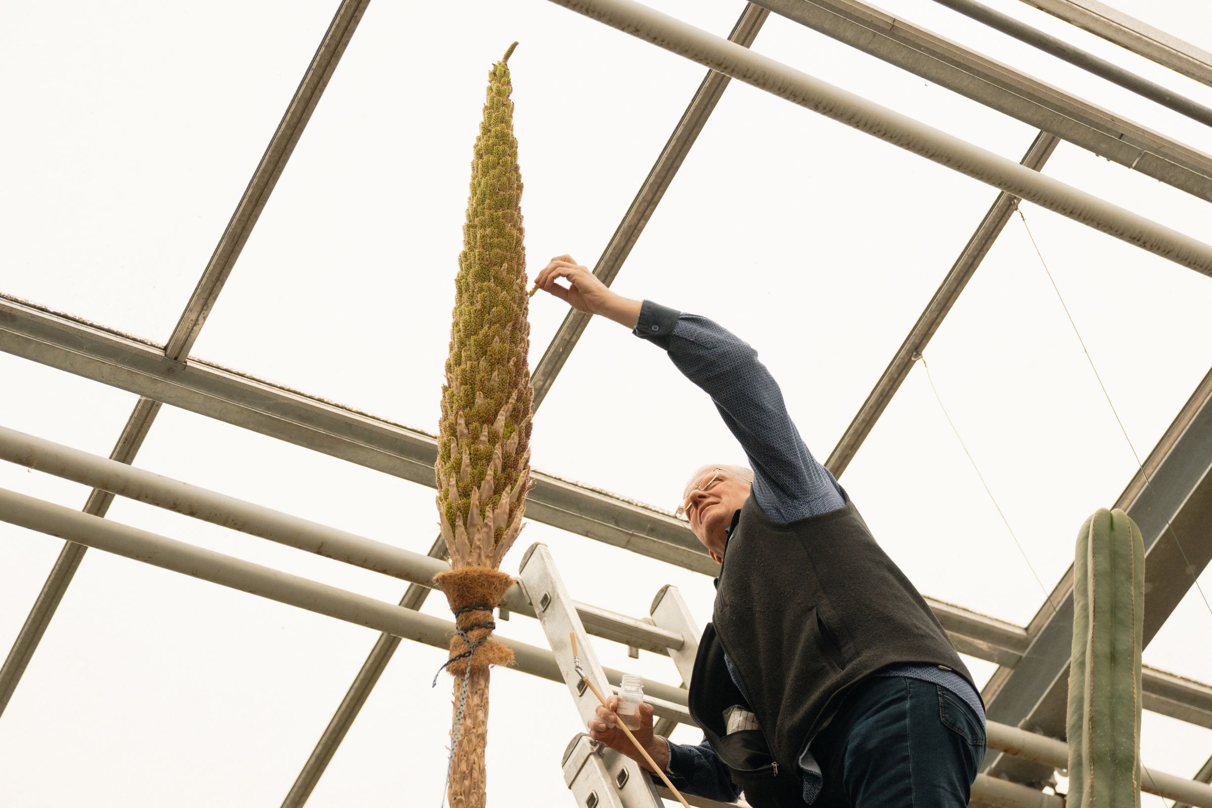Der Stachellose Rauschopf stammt aus den Trockengebieten im Nordosten Mexikos. Die dort ebenfalls im Frühjahr blühende Pflanze wächst in 2.000 Metern Höhe zwischen Kalkfelsen und anderen Trockenheit ertragenden Arten wie Kakteen, Agaven, Yucca und Akazien. „Rauschöpfe sind entweder männlich oder weiblich, nicht zwittrig wie viele andere Pflanzen“, erklärt Michael Burkart. „Die Bestäubung erfolgt in der Natur vermutlich durch den Wind. Zumindest haben die Blüten weder Duft noch Farben und auch keinen Nektar, um mögliche Bestäuber anzulocken.“