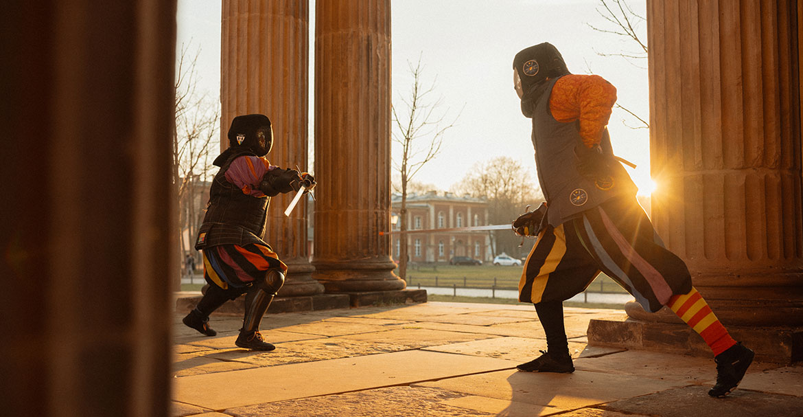 In der letzten Viertelstunde des Kurses wird frei gekämpft. Die Schwerter werden gegen kürzere Schaumstoffversionen ausgetauscht. Spätestens hier wird klar, dass dieser Kurs durchaus auch als Work-out taugt, denn jetzt sind Schnelligkeit und Aufmerksamkeit gefordert. Die Kämpfer umkreisen einander, schlagen zu, weichen aus, wehren ab. Zudem, erklärt Stephan Eickelmann, ist die Ausrüstung schwer und man kriegt unter der Maske weniger Luft, „fast wie bei einem Höhentraining“. Dann versammeln sich alle im Kreis für das Abschlussritual: Sie vollführen eine kreisende Bewegung mit dem Schwert und verbeugen sich leicht – so hat man es schon im 16. Jahrhundert gemacht.
