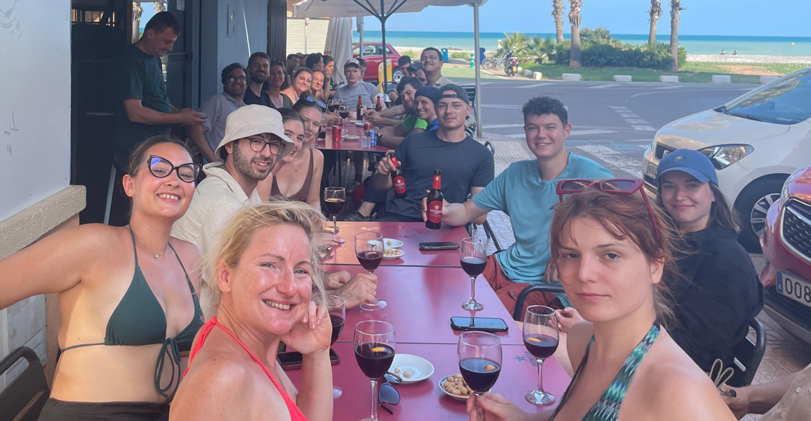 Nachdem wir die Funde dokumentiert, extrahiert und für den Transport ins Museum von Burriana vorbereitet haben, wird das Grabungsareal gesäubert und abgedeckt. So wird es vor Witterung und Pflanzenwuchs geschützt. Daraufhin vertreiben wir uns die Zeit, bis der Bus uns abholt, in einem einheimischen Restaurant. Hier haben die Potsdamer Studierenden der letzten Jahre zu jeder „Siesta“ den Schatten genossen und etwas getrunken; das erzählt uns die Eigentümerin. Für uns ist es das letzte „Dirt-Getränk“ zum Abschluss der Grabungstage.