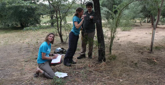 Abbildung 2_Foto-Liana Kindermann.JPG: Potsdamer Forschende der Arbeitsgruppe von Prof. Dr. Anja Linstädter (links) bei der Probennahme. Foto: Liana Kindermann