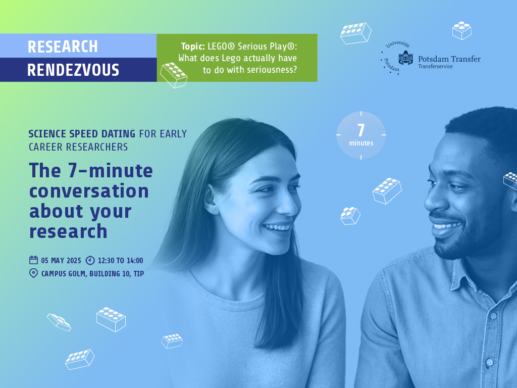 Es ist wieder soweit: Wir laden euch zum nächsten Research Rendezvous ein – dem Science Speed Dating Event für Wissenschaftler*Innen in frühen Karrierephasen an der Uni Potsdam. Dieses Mal wollen wir gemeinsam erfahren, wie LEGO-Steine im Arbeitskontext eingesetzt werden und warum wir LEGO Serious Play gern in der Projektarbeit und als Innovationstreiber verwenden.