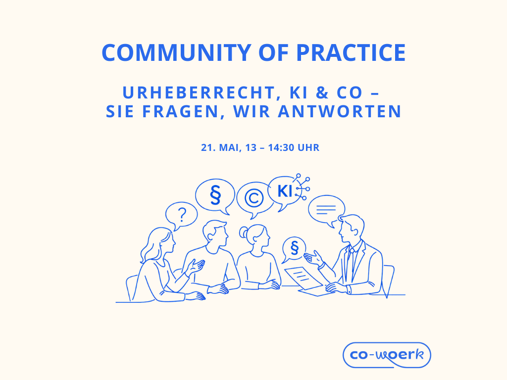 Netzwerk Co-WOERK: Workshop "Urheberrecht, KI & Co - Sie fragen, wir antworten"