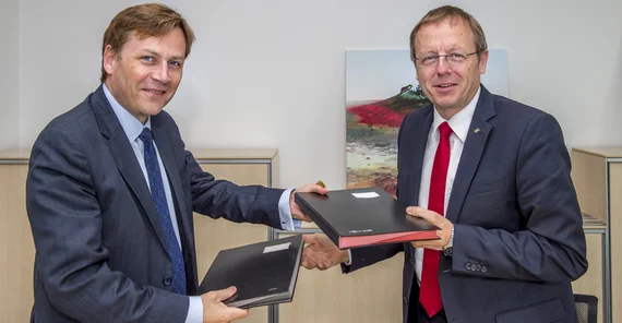 Die Universität Potsdam und das Deutsche Zentrum für Luft und Raumfahrt (DLR) wollen ihre bestehende Zusammenarbeit auf eine neue, institutionalisierte Ebene heben. Ein entsprechendes Memorandum of Understanding (MoU) ist heute vom Präsidenten der Universität, Prof. Oliver Günther, Ph.D., und dem Vorstandsvorsitzenden des DLR, Prof. Dr.-Ing. Johann-Dietrich Wörner, in Berlin unterzeichnet worden. Darin vereinbarten beide Seiten, in Forschung und Nachwuchsförderung intensiver zusammenzuarbeiten und komplementäre Kompetenzen zu bündeln, um sich gemeinsam den Herausforderungen eines verstärkten Wettbewerbs stellen zu können.