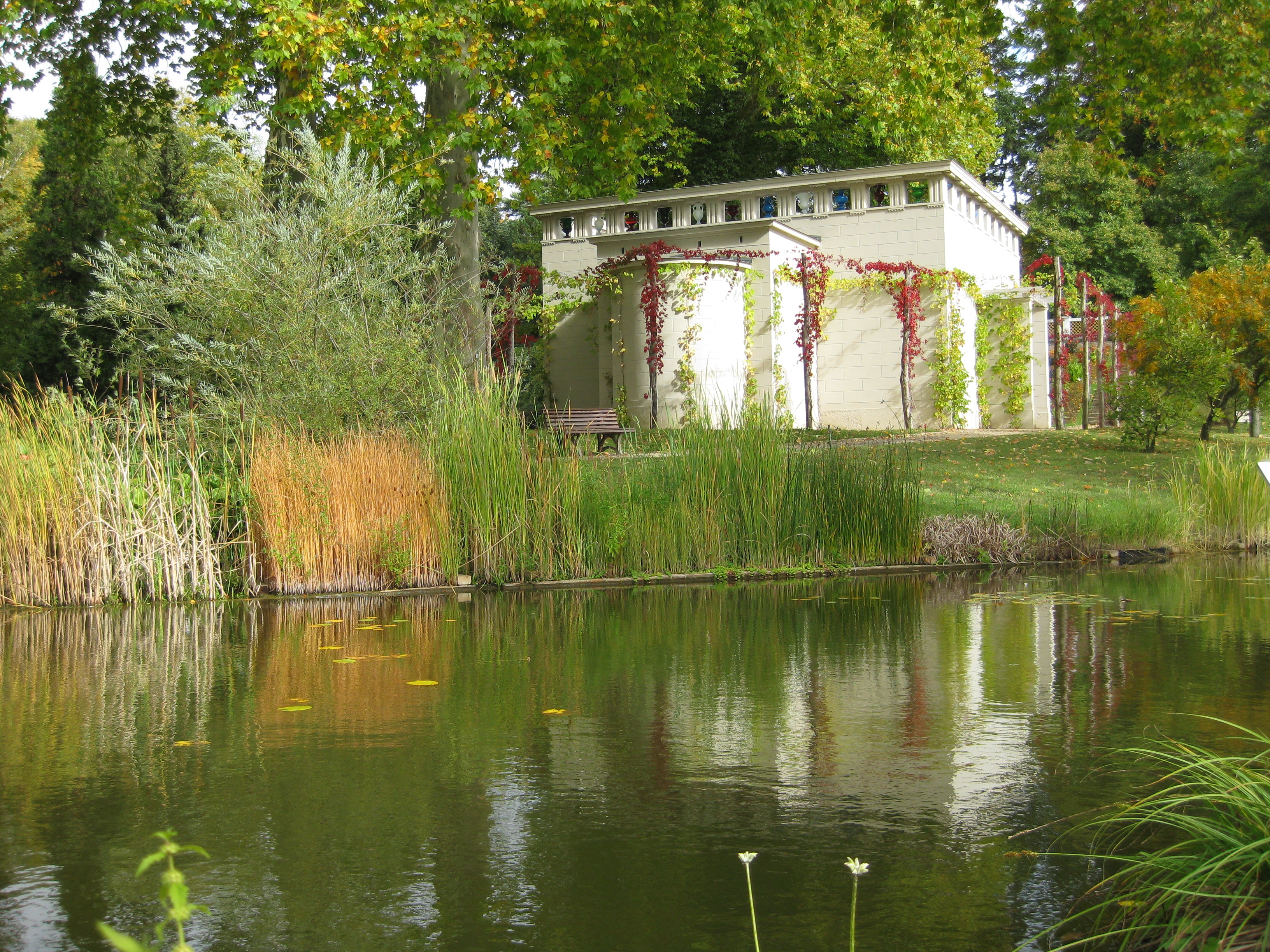 Im nördlich der Maulbeerallee gelegenen Paradiesgarten befindet sich ein architektonisches Kleinod – das Stibadium. Eingerahmt von einer Wasserkaskade, einem Bassin und einem Teich mit Sumpf- und Wasserpflanzen, diente es einst Friedrich Wilhelm IV. als Refugium und ist bis heute ein Ort der Besinnung. Nachdem Stibadium, Kaskade und Bassin in den Jahren 2008/09 aufwendig restauriert wurden, bedürfen nun auch Teich und Bach einer Sanierung, denn sie verlieren Wasser. Die Dichtungen und Einfassungen der Pflanzflächen sind marode und müssen dringend erneuert werden.