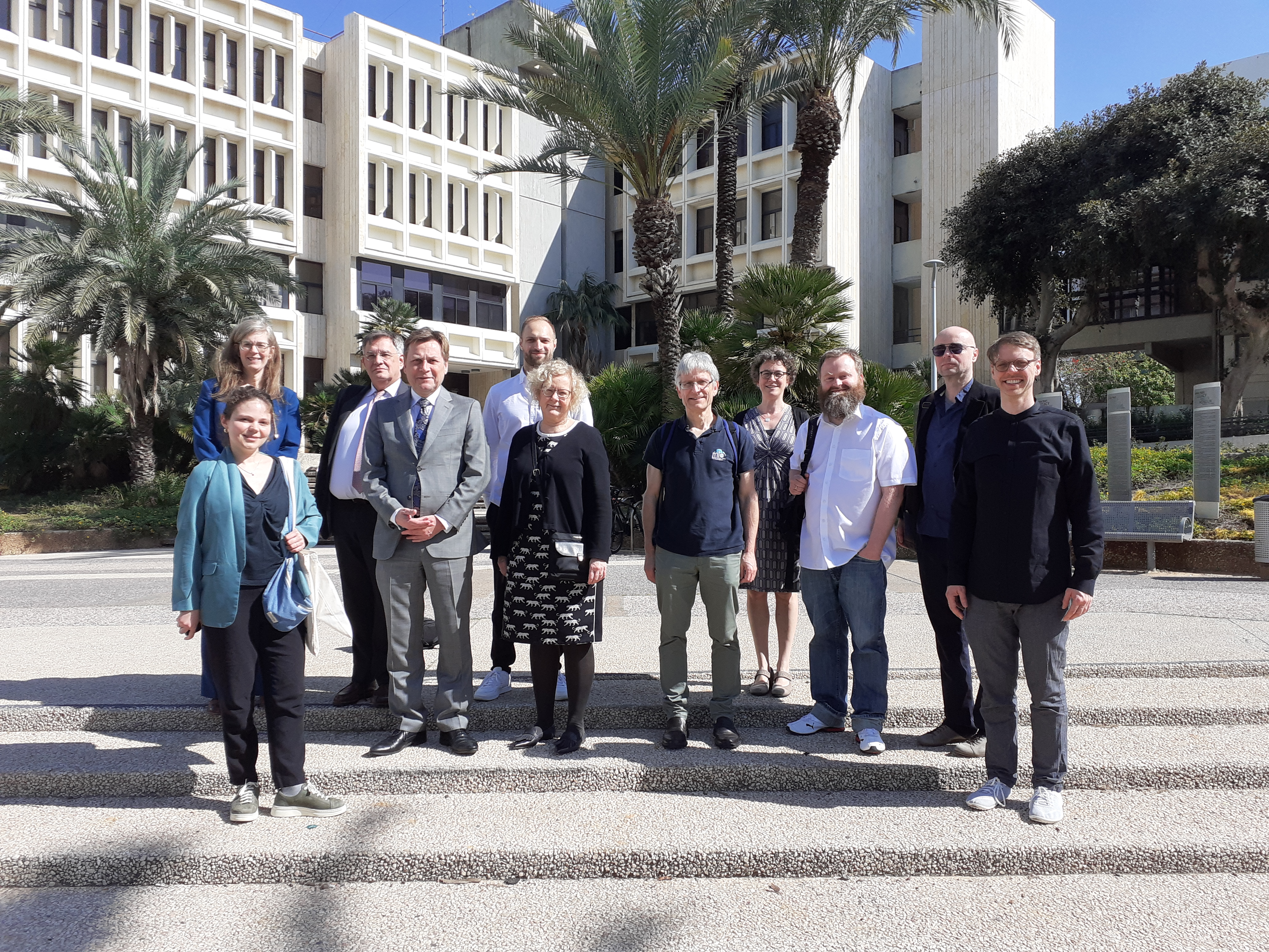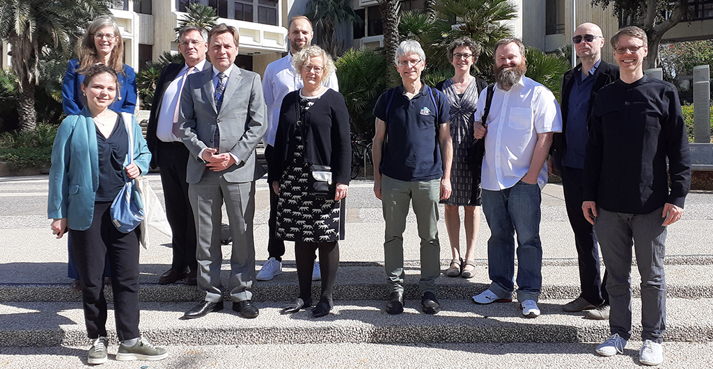 Photo: The delegation from the University of Potsdam with President Prof. Oliver Günther, Ph.D. (fourth from left) and Vice President for International Affairs and Fundraising Prof. Dr. Florian J. Schweigert (third from left) at Tel Aviv University (TAU). Photo: University of Potsdam.