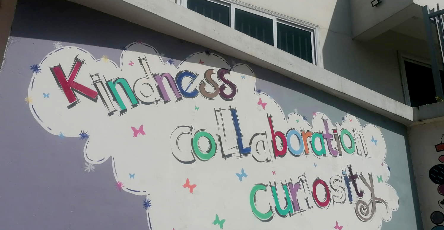Today, for some of us, the day starts just like at home - at school. We are given a private tour of the Apple Valley International School (AVIS) in Kumasi. As it is currently the winter vacation, we don't meet any students, but the teachers make time for an interesting discussion. The school was founded in 2021 and is still under construction. Both the classrooms and school buildings as well as the curriculum are constantly being expanded. As a highly regarded private school, it forms a clear contrast to the small school we had already visited in Odododiodioo. The international school accepts children from the age of two. In kindergarten, they mainly speak Asante Twi. Later, lessons are taught in English and French. The school year is divided into trimesters. The contact between teachers, children and their parents is very intensive and everyone is allowed to make suggestions for changes. We are very impressed by the many notes and pictures in the classrooms and on the walls, which are intended to motivate and strengthen the children. This is also reflected in the school motto "kindness, collaboration, curiosity" (see picture).