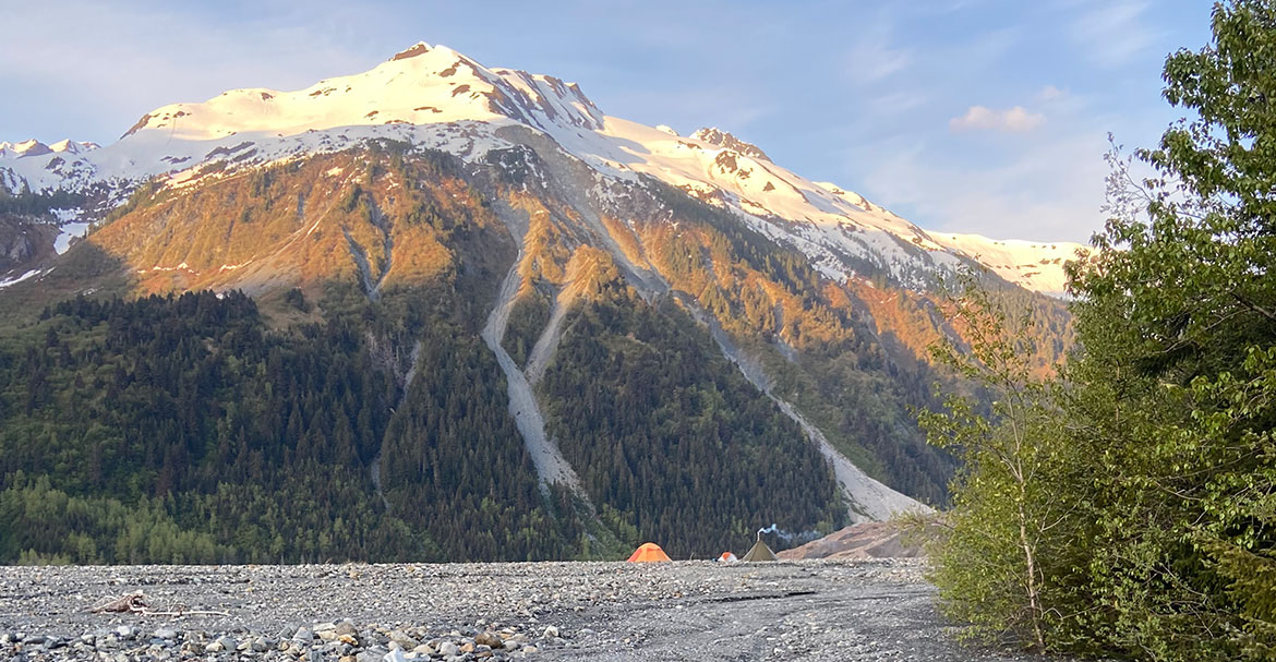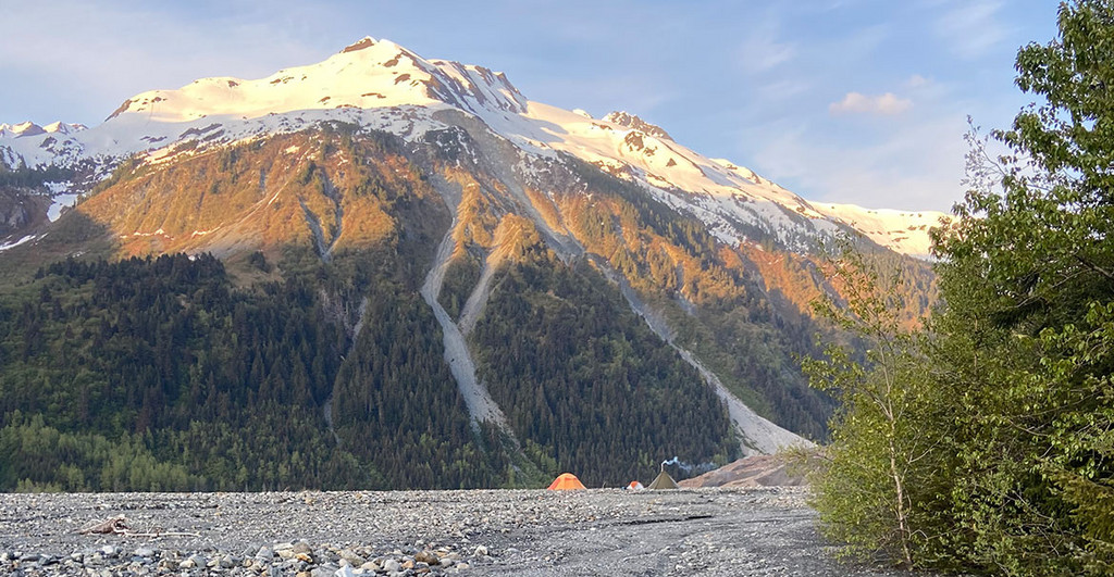 In the early summer of 2023, PhD student Natalie Lützow, Professor Oliver Korup, and project leader Dr. Georg Veh traveled to southeastern Alaska to survey Desolation Lake for almost two weeks – far away from any civilization. There are no settlements far and wide. When the lake bursts out, the water flows into Lituya Bay. So why are they particularly interested in this lake? “Desolation Lake is located in unusually steep terrain,” Georg Veh says. The terrain is extremely rugged. Within just a few kilometers, it goes steeply uphill to 5,000 meters from sea level. In the narrow valleys there are glaciers with lakes that burst out regularly. In addition, the area is seismically highly active: There are regular earthquakes, the rock crumbles, the landscape changes in a relatively short time. “A super exciting area for geomorphologists!” An opinion that also applies to the lake and its outbursts. Desolation Lake is 12 km2 in size and contains around 500 million m3 of water. When it bursts out, which has happened at least 48 times since 1972, much of its contents pour through the valleys towards the bay. “Each individual flood carries vast amounts of sediment,” Lützow explains. “This sometimes includes boulders the size of a truck.”