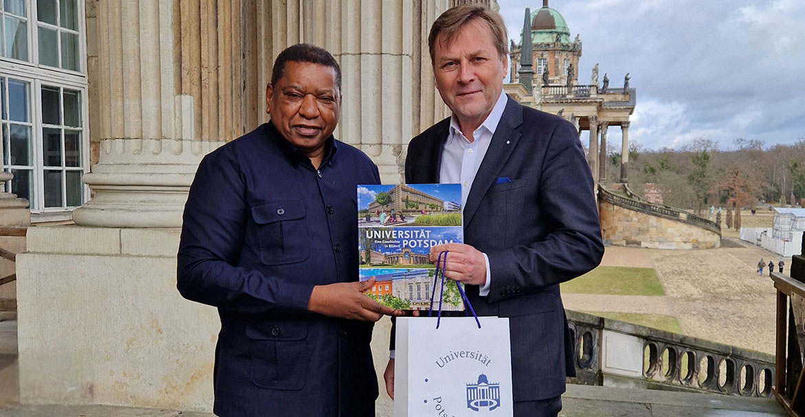 2026-021_Botschafter_Namibia2_Foto_Marita Böhning: University of Potsdam President Oliver Günther welcomes Namibia’s new ambassador, His Excellency Jerobeam Shaanika (left). Photo: Marita Böhning